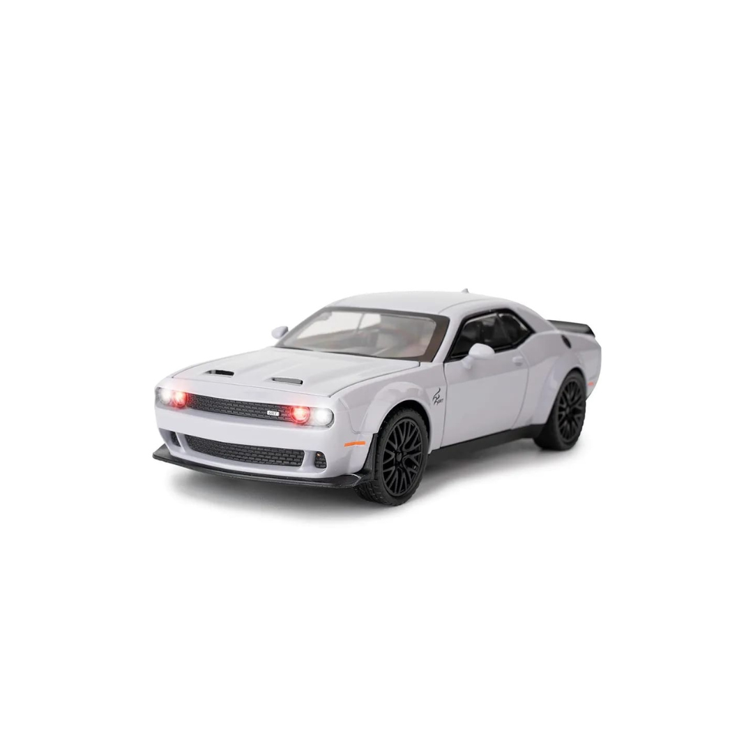 Disfruta la potencia y el diseño icónico del Dodge Challenger Hellcat en versión miniatura. Este modelo de coche a escala está fabricado con materiales de alta calidad, combinando carrocería metálica y detalles en plástico resistente, lo que lo convierte en una pieza ideal tanto para niños como para adultos coleccionistas.